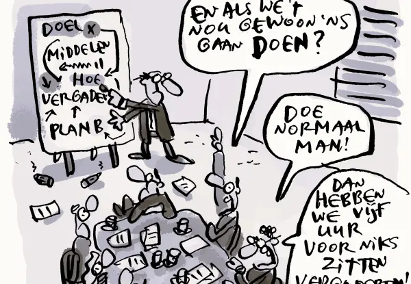 Je gaat met elkaar lachen om de verschillende type vergaderingen die er zijn en waarschijnlijk ga je gezamenlijk concluderen dat er ook bij jullie nog verbetering mogelijk is. Met behulp van de 10 basisprincipes voor energiek en effectief vergaderen ga je samen (snel!) afspraken maken om jullie vergaderingen op het volgende niveau te brengen.