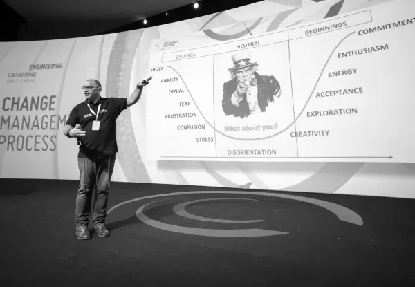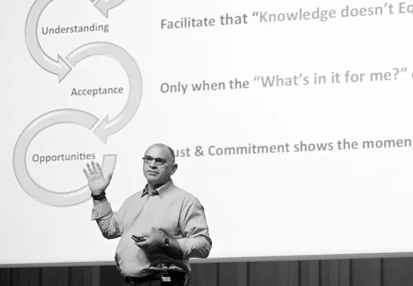 Op locatie worden transitiemanagers, projectleiders, management teams en overige betrokkenen voorbereid op het veranderproces en ieders rol hierin.